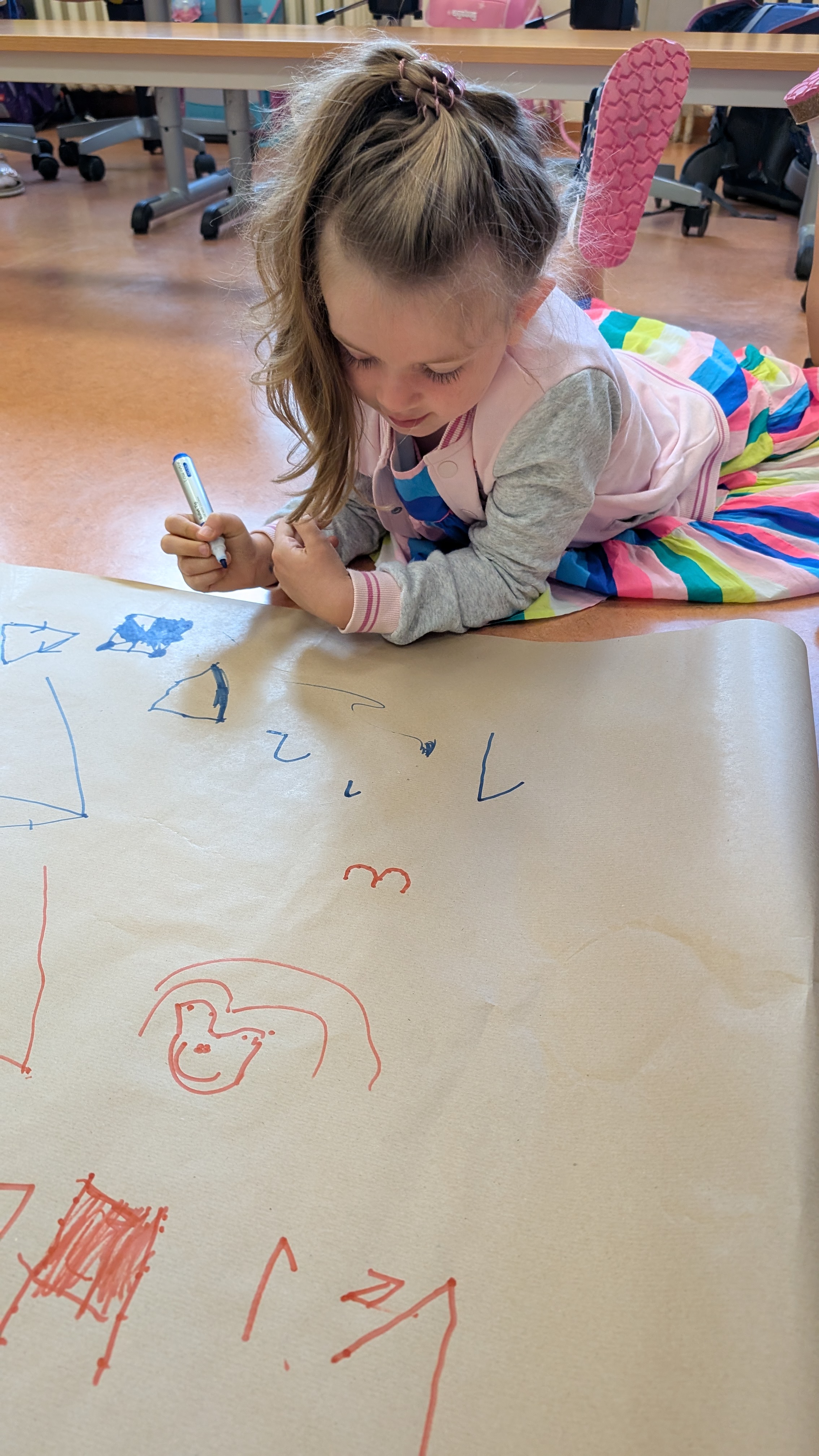 Besucht wurden wir auch schon viel: von den Erzieherinnen aus den Kitas, einem Polizisten, Flex, Flora und Flo - und natürlich von unseren Paten aus der 3c. Ein paar Eltern waren beim Basteltag dabei und wir haben zusammen eine schöne Weihnachtsfeier gefeiert.