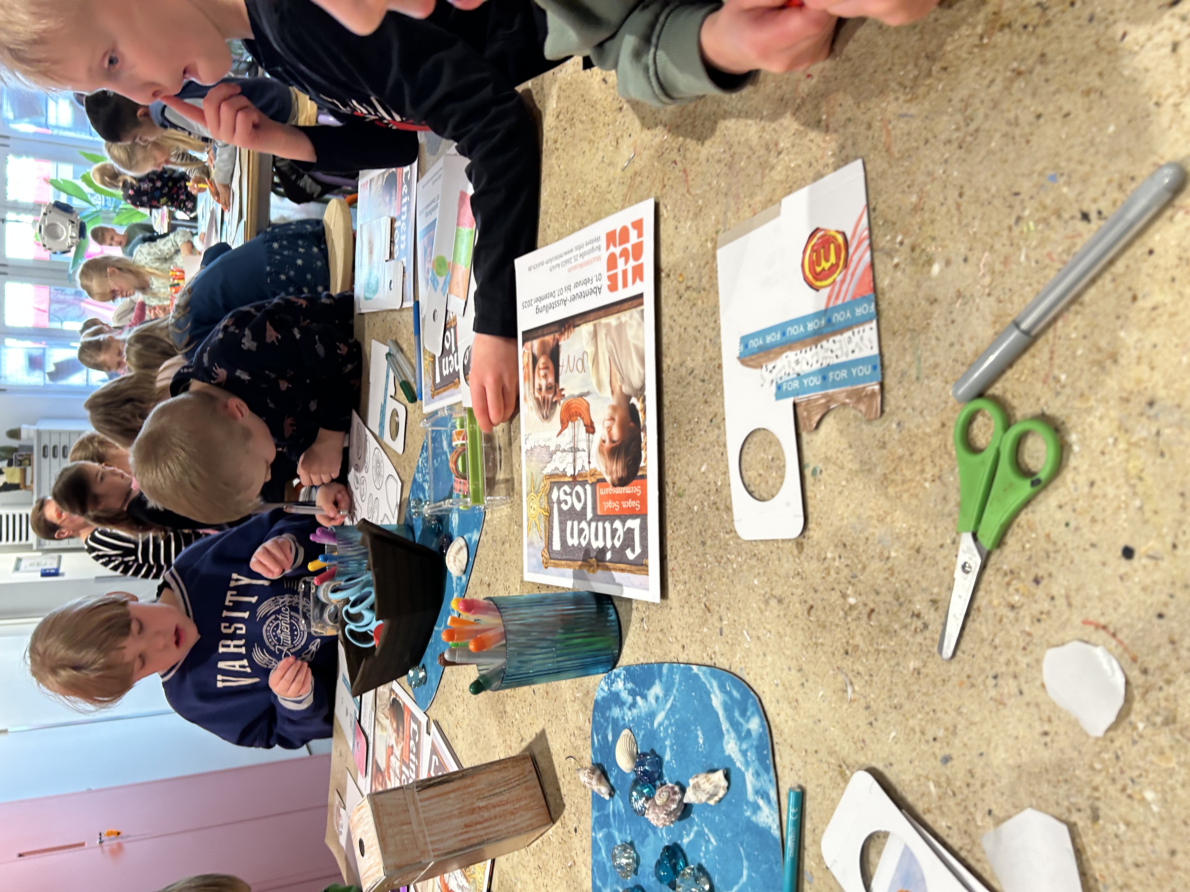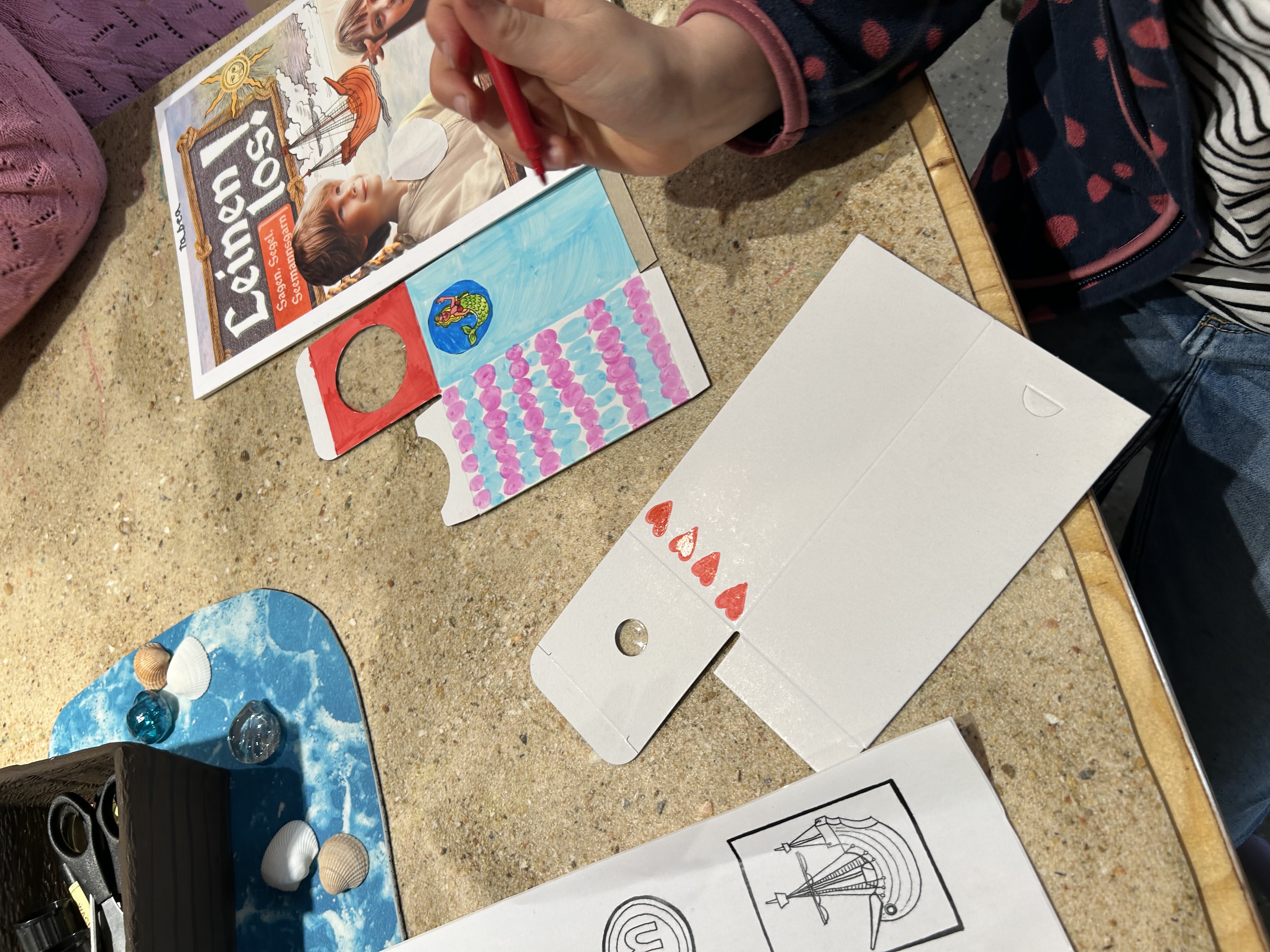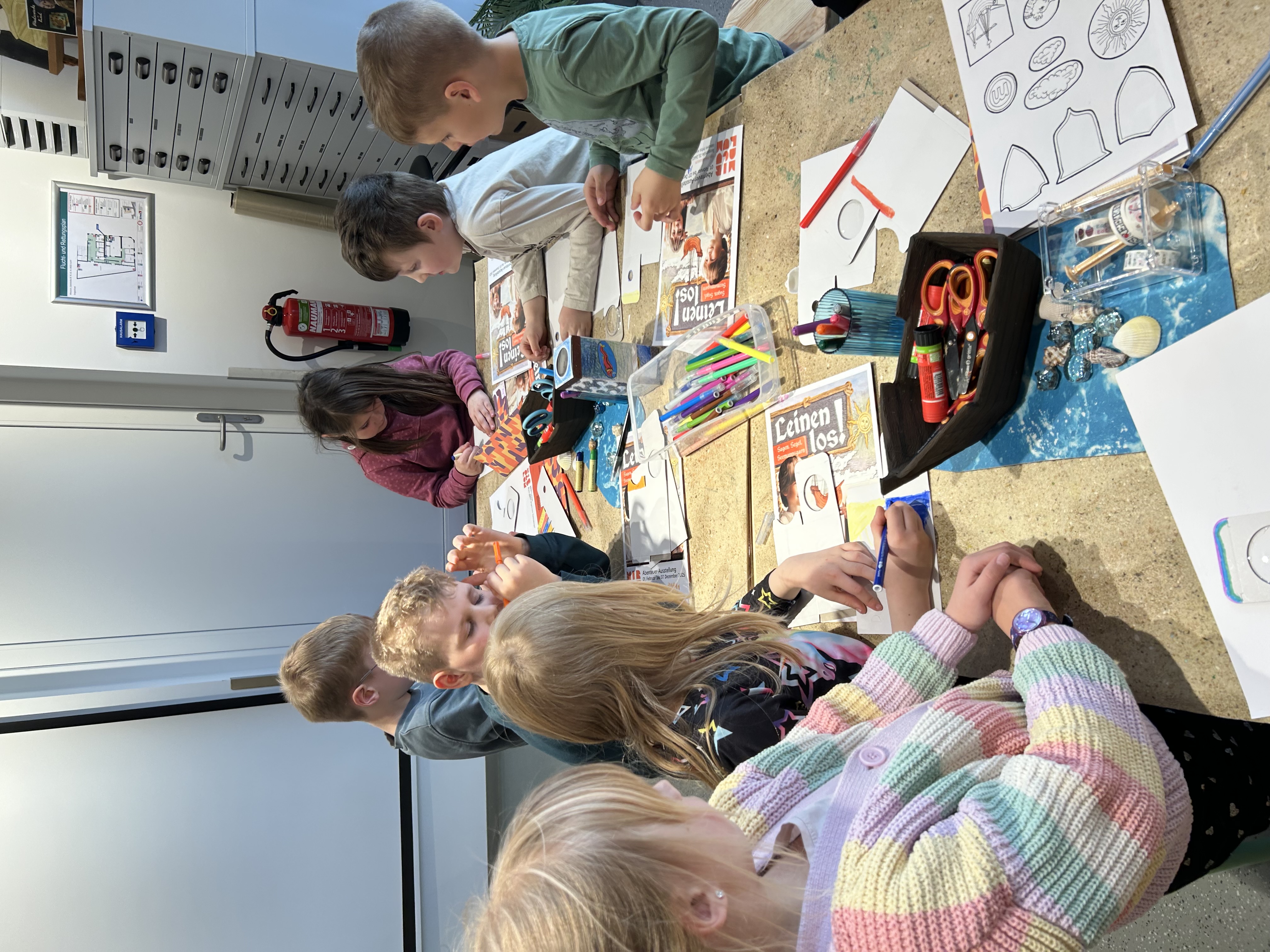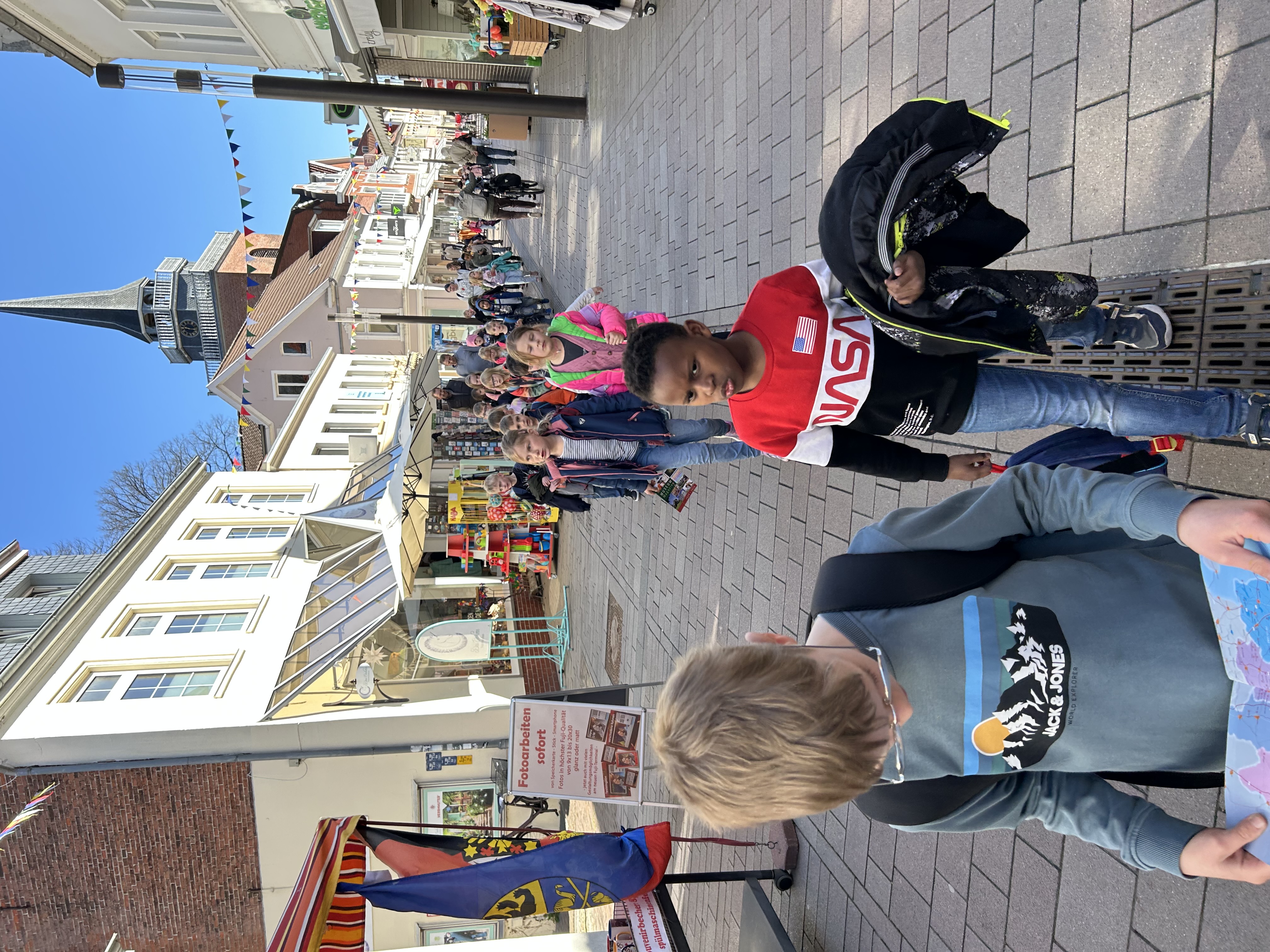 Am 3. April waren wir mit dem 1. Jahrgang in Aurich. Dort besuchten wir das MachMitMuseum mit dem Thema "Leinen los - Sagen, Segel, Seemansgarn" und die Kunstschule. Im Museum konnten die Kinder alles ausprobieren und erkunden, sich verkleiden und vieles mehr. Anschließend haben wir auf dem Marktplatz mit der anderen 1. Klasse gemeinsam gefrühstückt. Im Anschluss ging es weiter in die Kunstschule. Dort wurden passend zu dem Thema Fernrohre gebastelt und gestaltet. Es war ein schöner Vormittag, den alle sehr genossen haben.