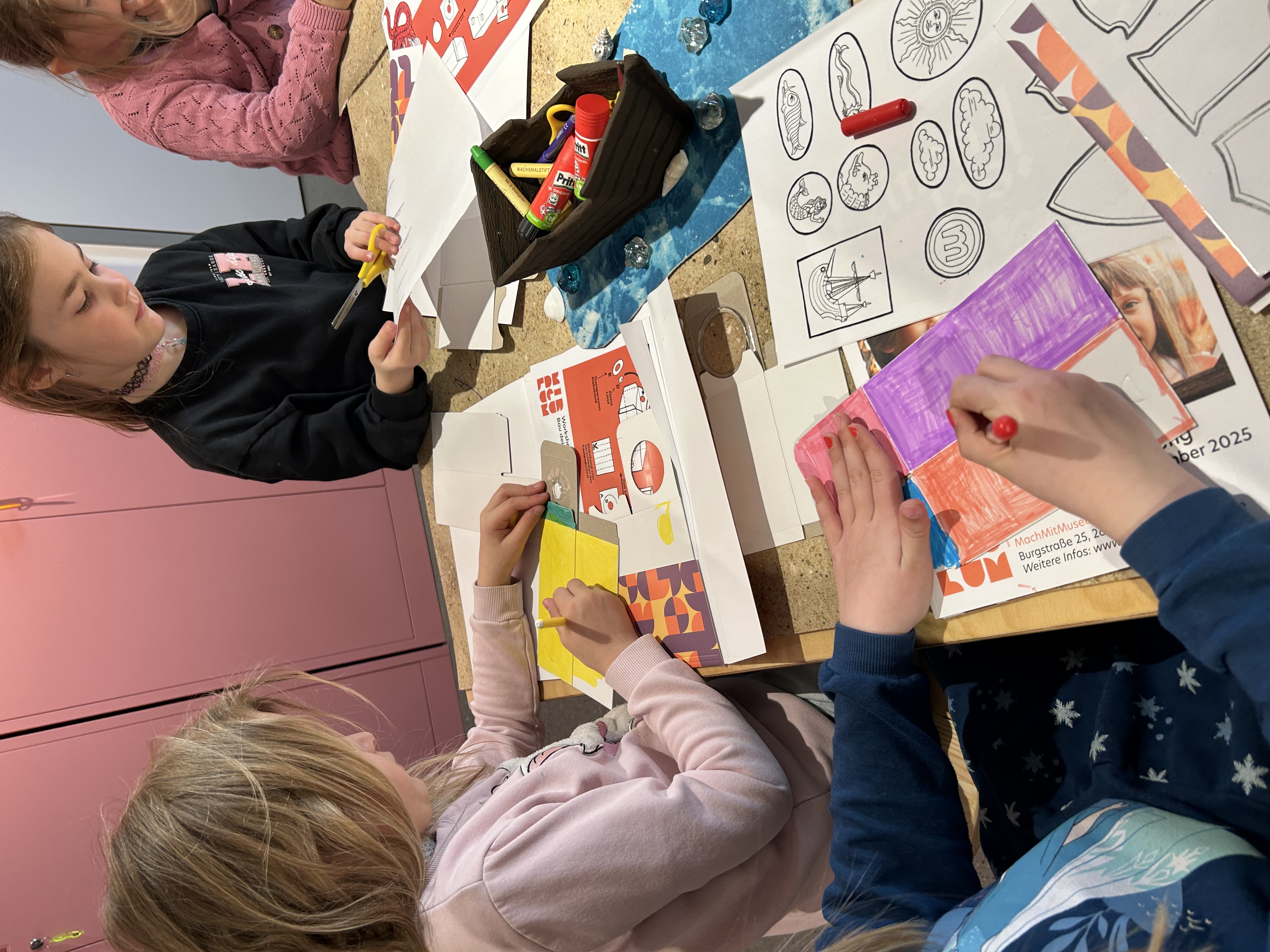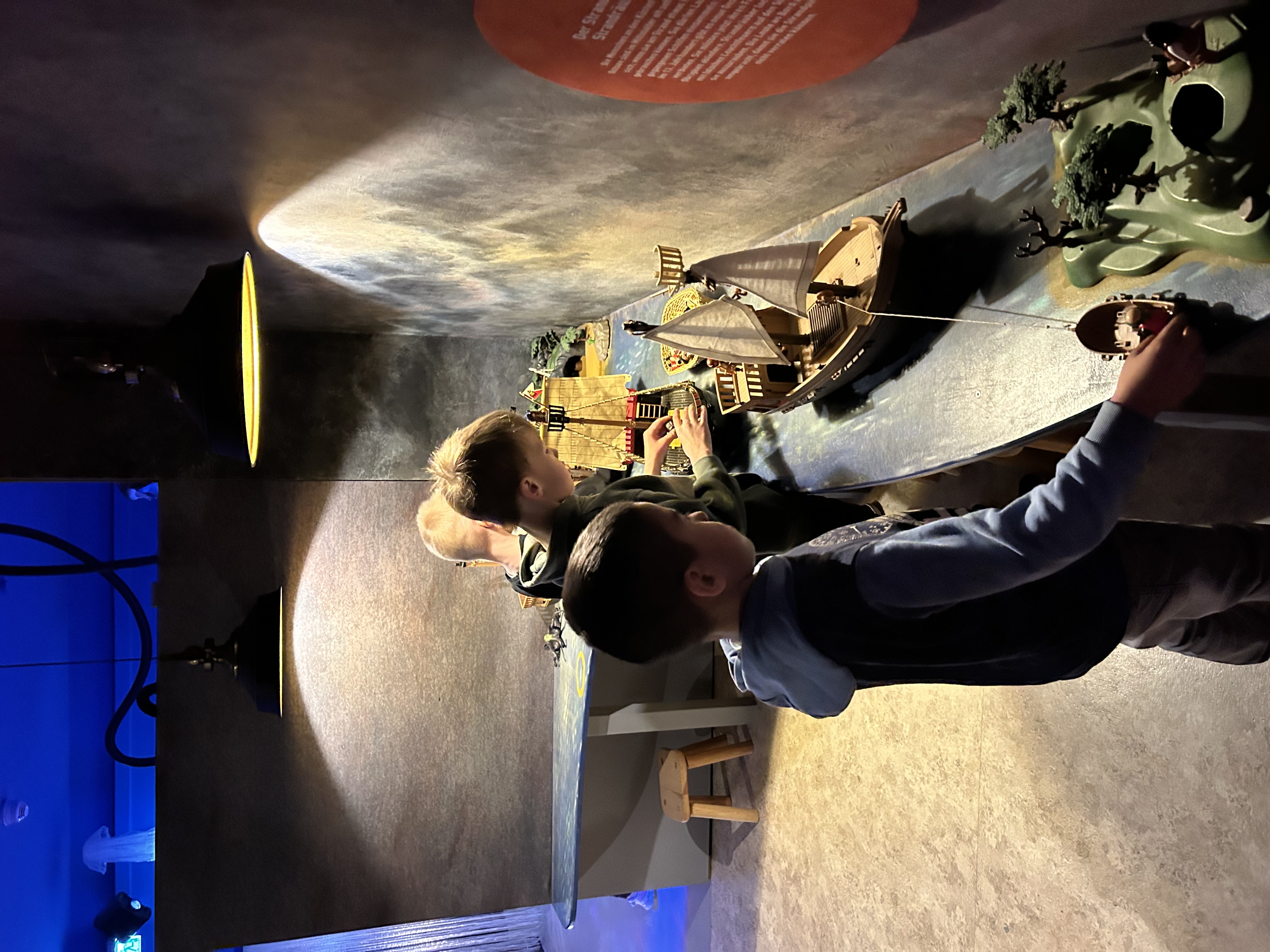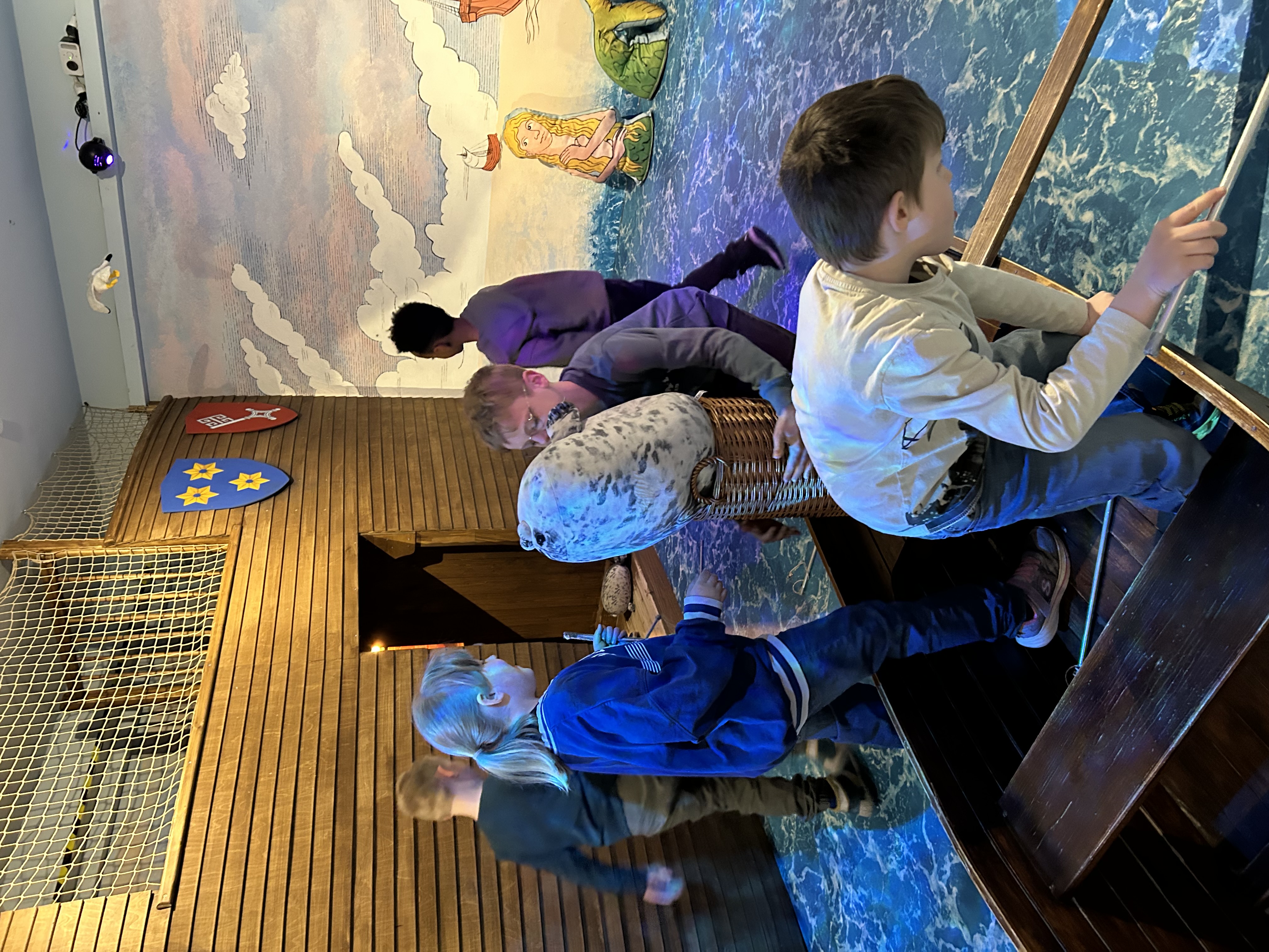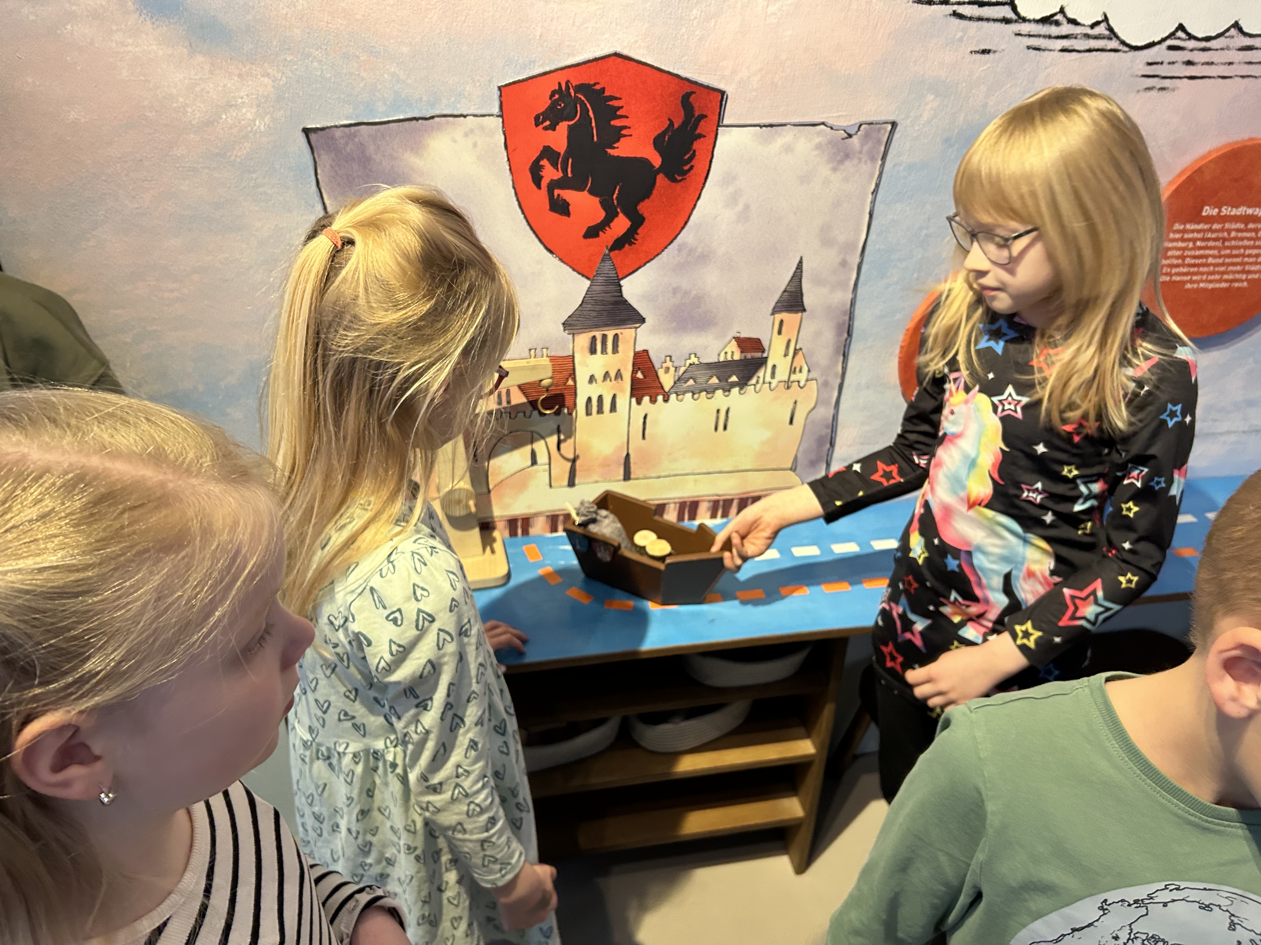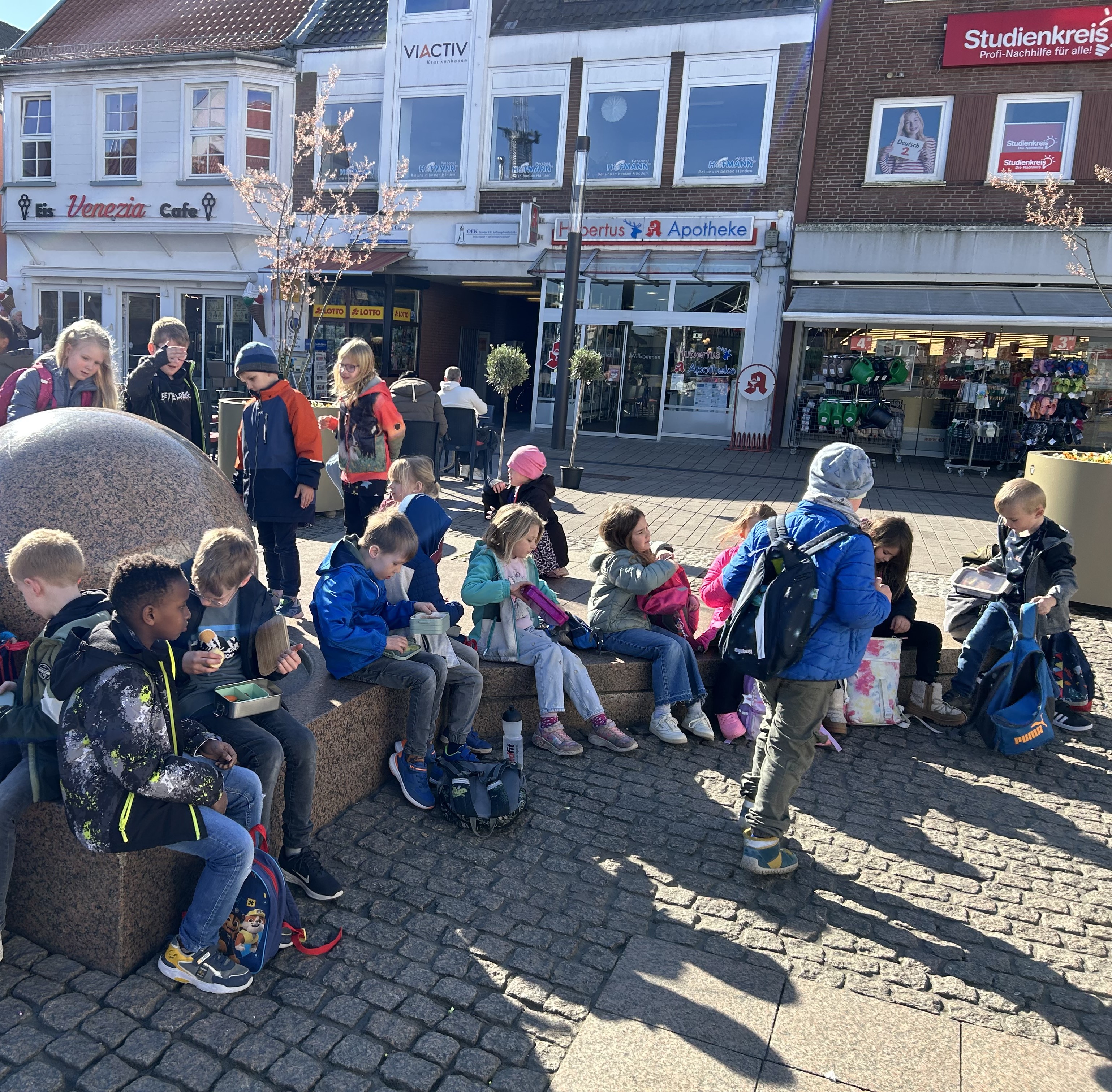 Am 3. April waren wir mit dem 1. Jahrgang in Aurich. Dort besuchten wir das MachMitMuseum mit dem Thema "Leinen los - Sagen, Segel, Seemansgarn" und die Kunstschule. Im Museum konnten die Kinder alles ausprobieren und erkunden, sich verkleiden und vieles mehr. Anschließend haben wir auf dem Marktplatz mit der anderen 1. Klasse gemeinsam gefrühstückt. Im Anschluss ging es weiter in die Kunstschule. Dort wurden passend zu dem Thema Fernrohre gebastelt und gestaltet. Es war ein schöner Vormittag, den alle sehr genossen haben.
