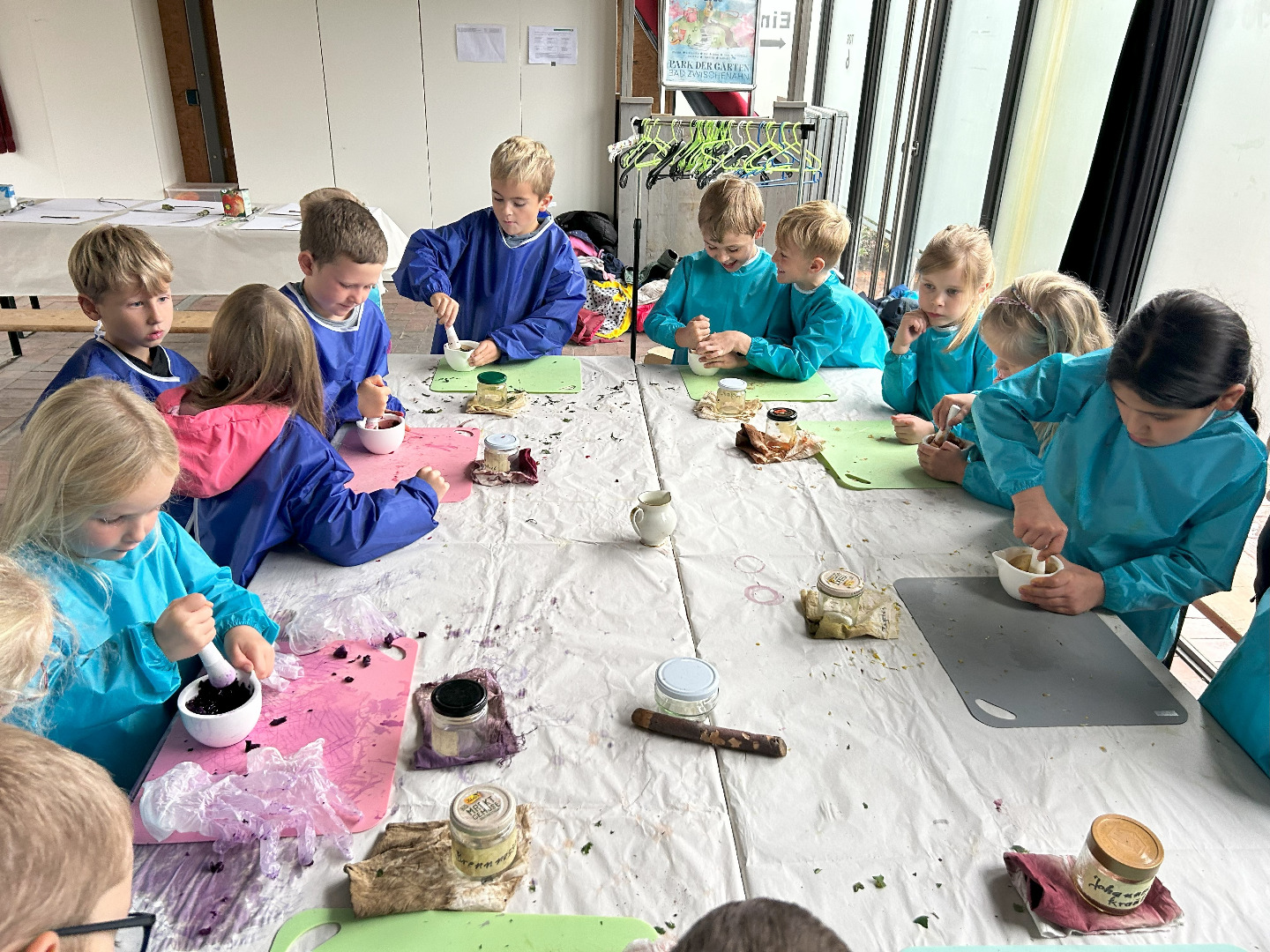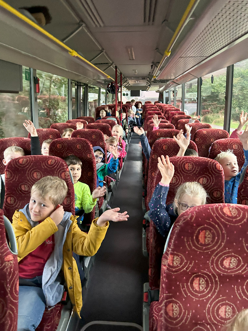 Nun sind wir schon sieben Wochen in der Schule und am vergangenen Donnerstag haben wir unseren ersten gemeinsamen Ausflug gemacht! Schon seit Tagen war die Vorfreude riesengroß und nun war es endlich soweit! Gemeinsam mit allen ersten Klassen waren wir im Park der Gärten in Bad Zwischenahn. Trotz Regen hatten wir alle einen wunderschönen Tag! Pünktlich um viertel vor neun sind wir mit dem Bus losgefahren. Dort angekommen wurden wir von den freundlichen Mitarbeitern des Parks begrüßt. Wir sind in Gruppen durch den Park spaziert und haben viel über die Pflanzen und Tiere im Garten erfahren. Wir haben den Park mit allen Sinnen wahrgenommen und wir haben aus vielen verschiedenen Pflanzen Farben hergestellt. Mit den Farben und einem selbst hergestellten Pinsel aus einem Apfelzweig haben wir im Anschluss tolle Bilder gemalt. Zum Schluss waren wir alle noch auf dem Kletterspielplatz. Der Regen und das Wetter haben uns nichts ausgemacht – unser erster Ausflug war einfach toll!