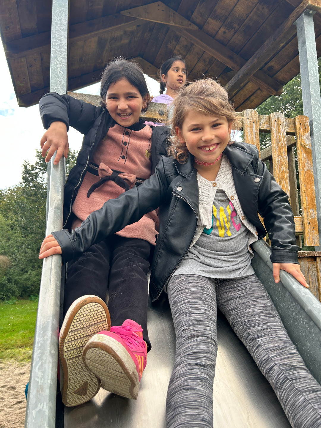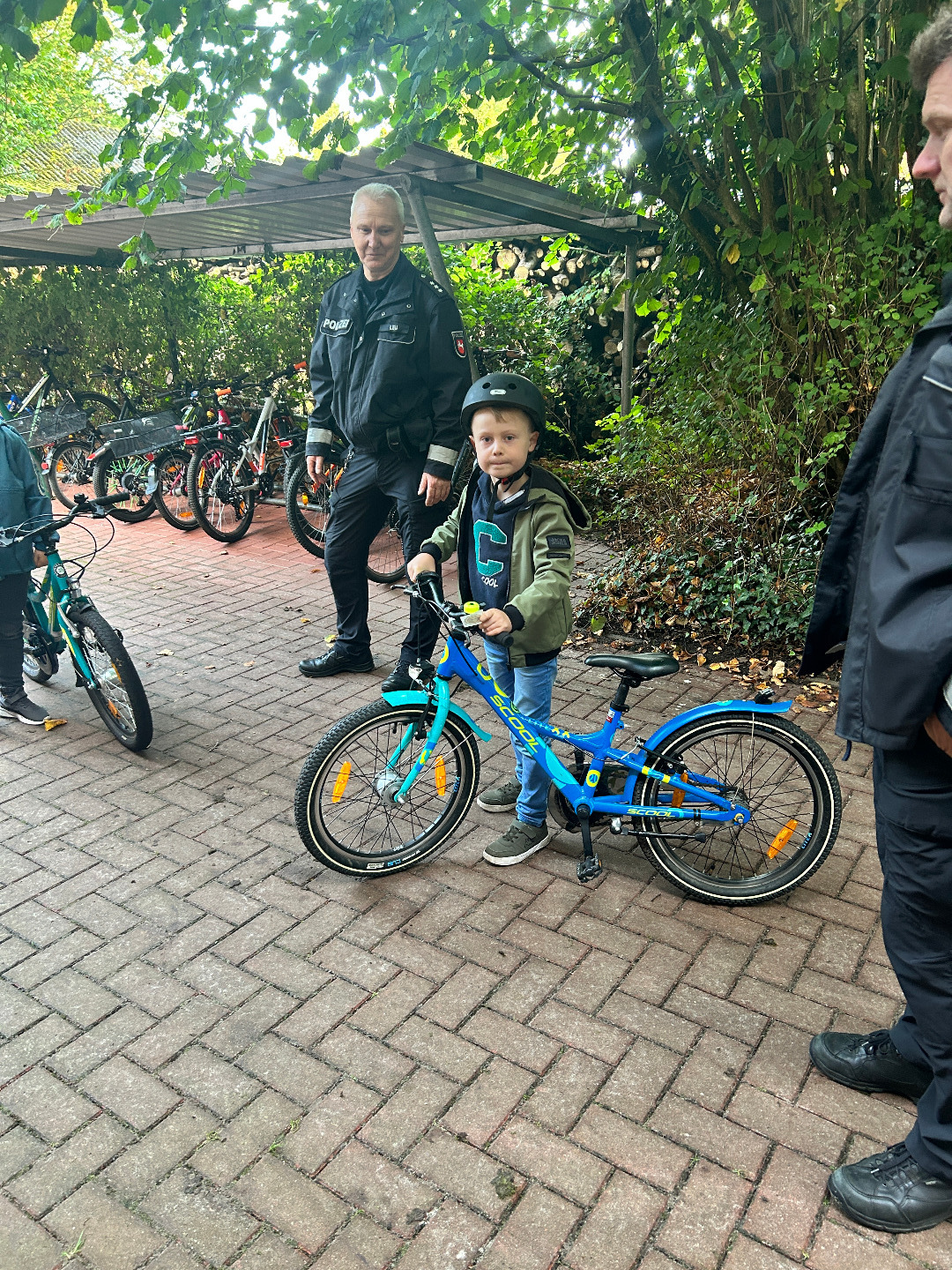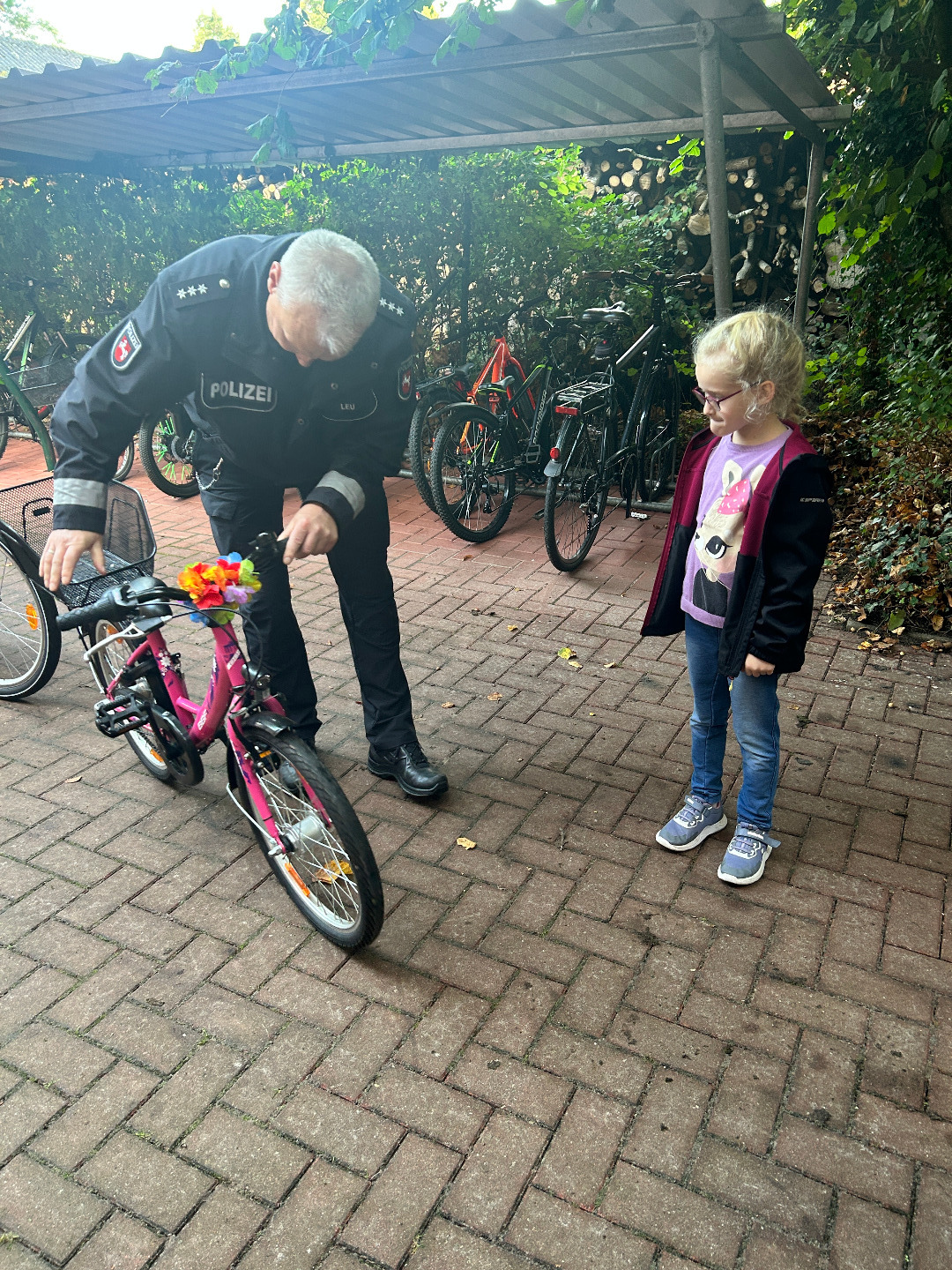 Wir sprachen darüber, welche Verkehrsmittel wir auf dem Weg zur Schule nutzen oder ob unsere eigenen Füße uns zur Schule tragen. Wir tauschten uns über unsere Schulwege aus und ergründeten die Vor-und Nachteile der genutzten Verkehrsmittel. Wir haben an mehreren Straßen in der Nähe der Schule geübt, wie wir sicher die Straße überqueren können. Gemeinsam mit dem Polizisten Herrn Franzen haben wir geprüft, an welchen Stellen wir die Straße gut einsehen und so sicherer überqueren können. Hier wurden gelbe Füße aufgesprüht. Außerdem überprüften die Polizisten alle Fahrräder auf Verkehrssicherheit, damit wir sicher mit dem Fahrrad zur Schule kommen. Zum Schluss machten wir noch einen tollen Spaziergang zu einer Schulexpress-Haltestelle und anschließend zum nahegelegenen Spielplatz. Wir haben ausgelassen zusammen gespielt! Das war ein schöner Tag!