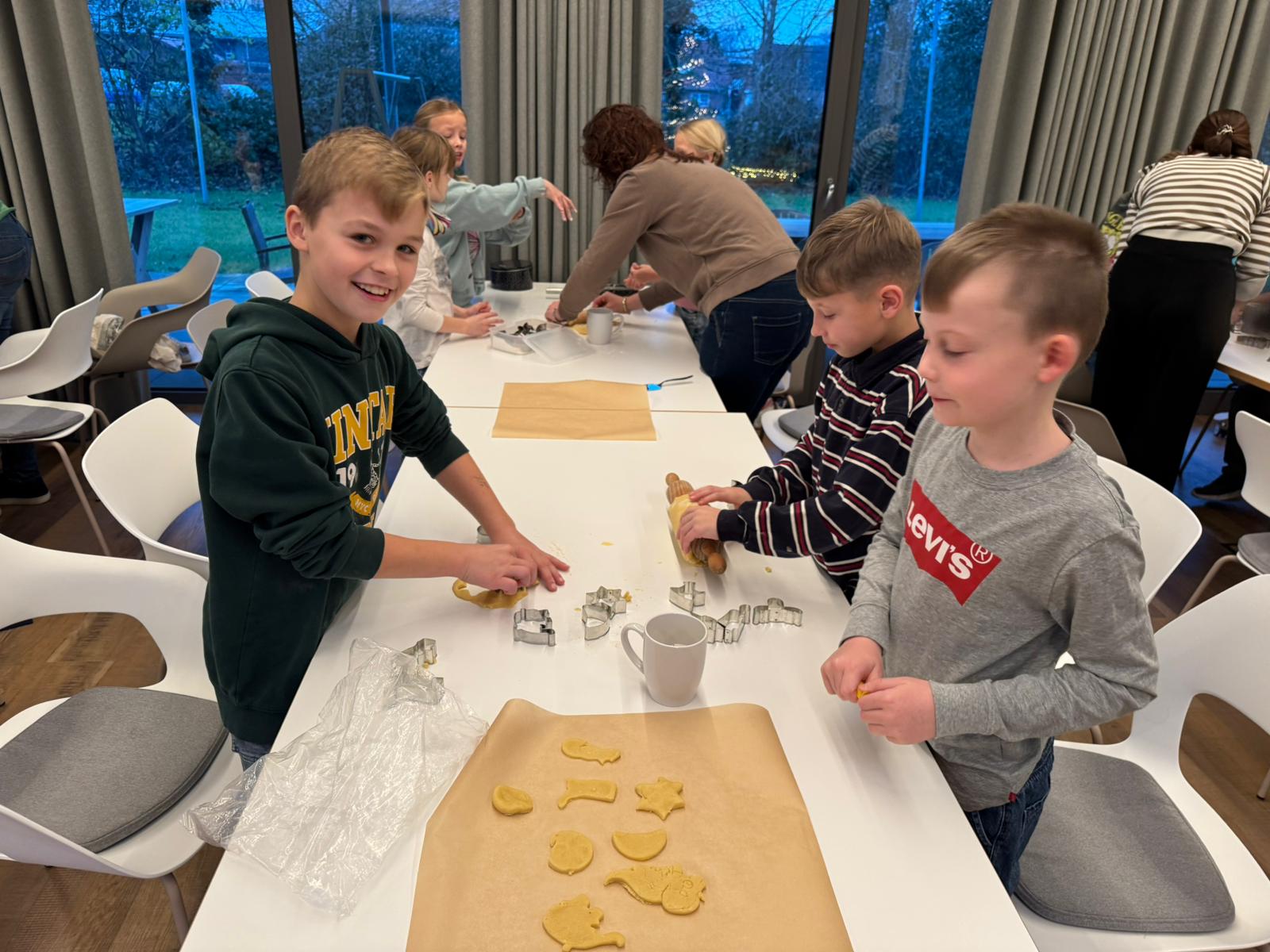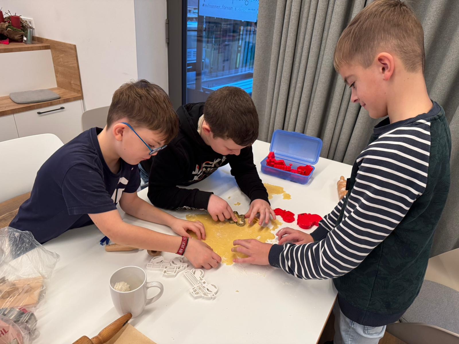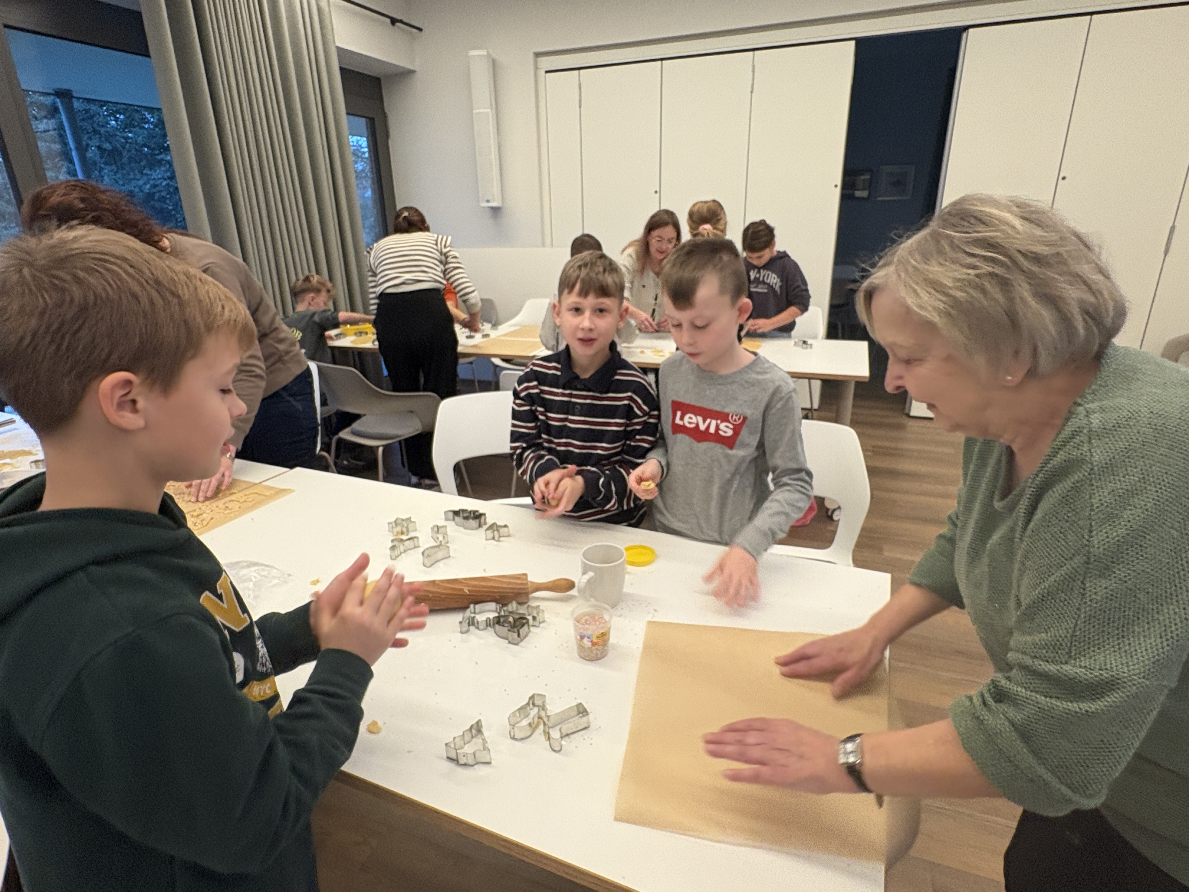 Am vergangenen Freitag haben wir uns auf den Weg zur Upkamer in Remels gemacht, um dort zusammen mit einigen Müttern aus unserer Klasse Kekse zu backen. Wir haben wie die Weltmeister gebacken und hatten viel Spaß beim Ausstechen und Keksteig Naschen. Während die Kekse im Ofen waren, haben wir gespielt oder in aller Ruhe gefrühstückt. Am Ende des Tages gingen wir mit vollen Bäuchen und zehn prall gefüllten Keksdosen zurück zur Schule. Nun können wir jeden Tag im Knusperkreis unsere selbstgebackenen Kekse genießen. Vielen Dank an alle Eltern, die uns an diesem Tag durch einen Teig oder durch Hilfe beim Backen unterstützt haben. Es war ein toller Tag!