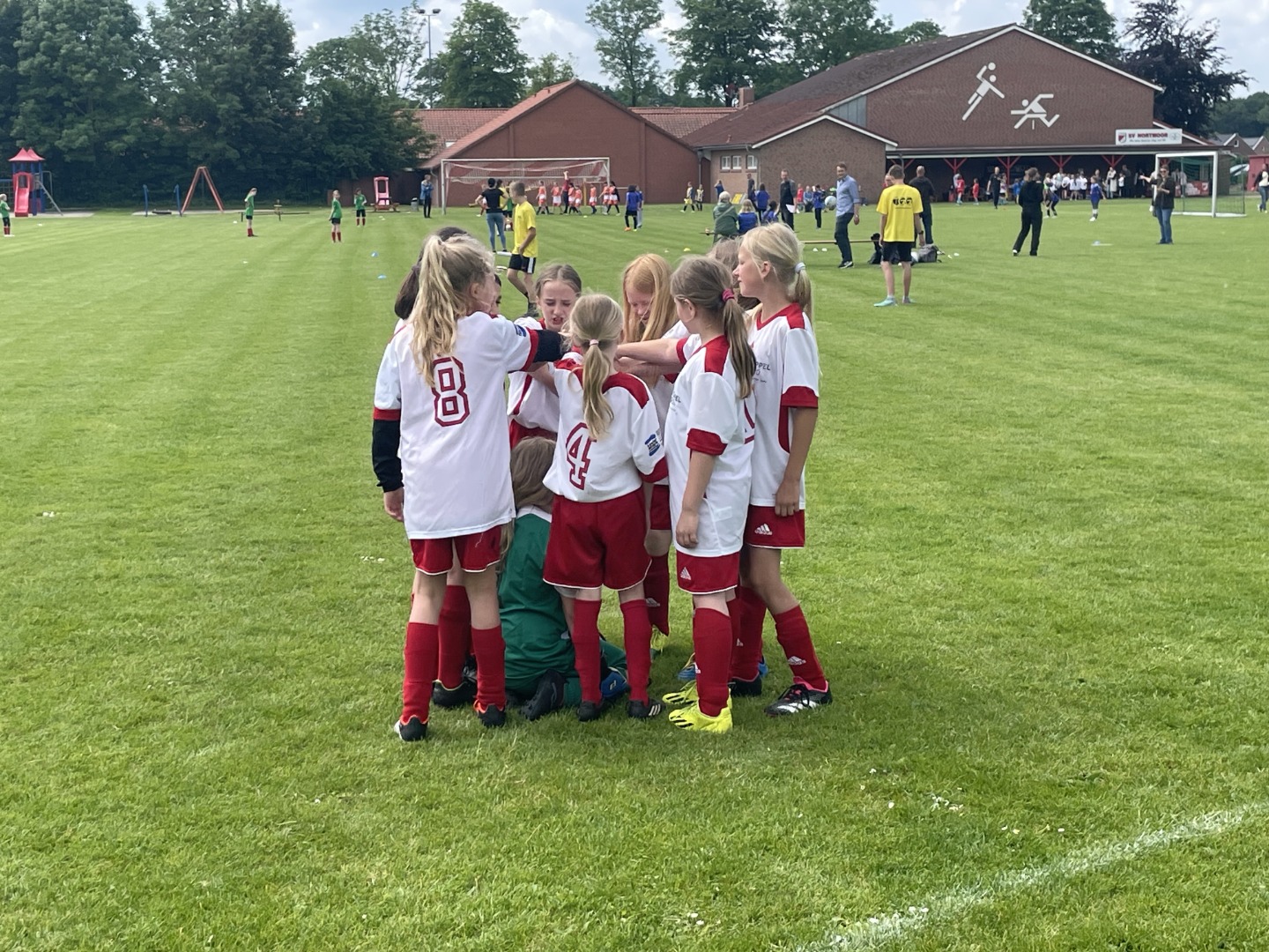 Beim Schulfußballturnier in Nortmoor haben unsere Mädchen den dritten Platz belegt. In der Gruppenphase gewannen wir vier unserer fünf Spiele (6:0, 3:0, 1:0 und 2:0) und mussten uns nur der Mannschaft aus Warsingsfehn-Ost knapp geschlagen geben (0:1). Im Halbfinale haben wir gut mitgehalten, aber am Ende 0:2 gegen die Grundschule aus Nortmoor verloren. Im Spiel um Platz 3 konnten wir dann dieses Mal gegen die Grundschule Warsingsfehn-Ost gewinnen (5:0). Es war ein richtig toller Tag mit ganz viel tollen Fußballspielen. <\/p>\r\n