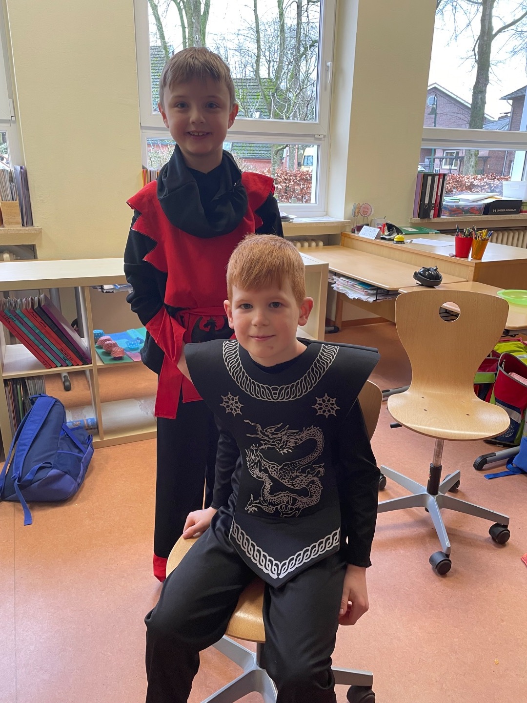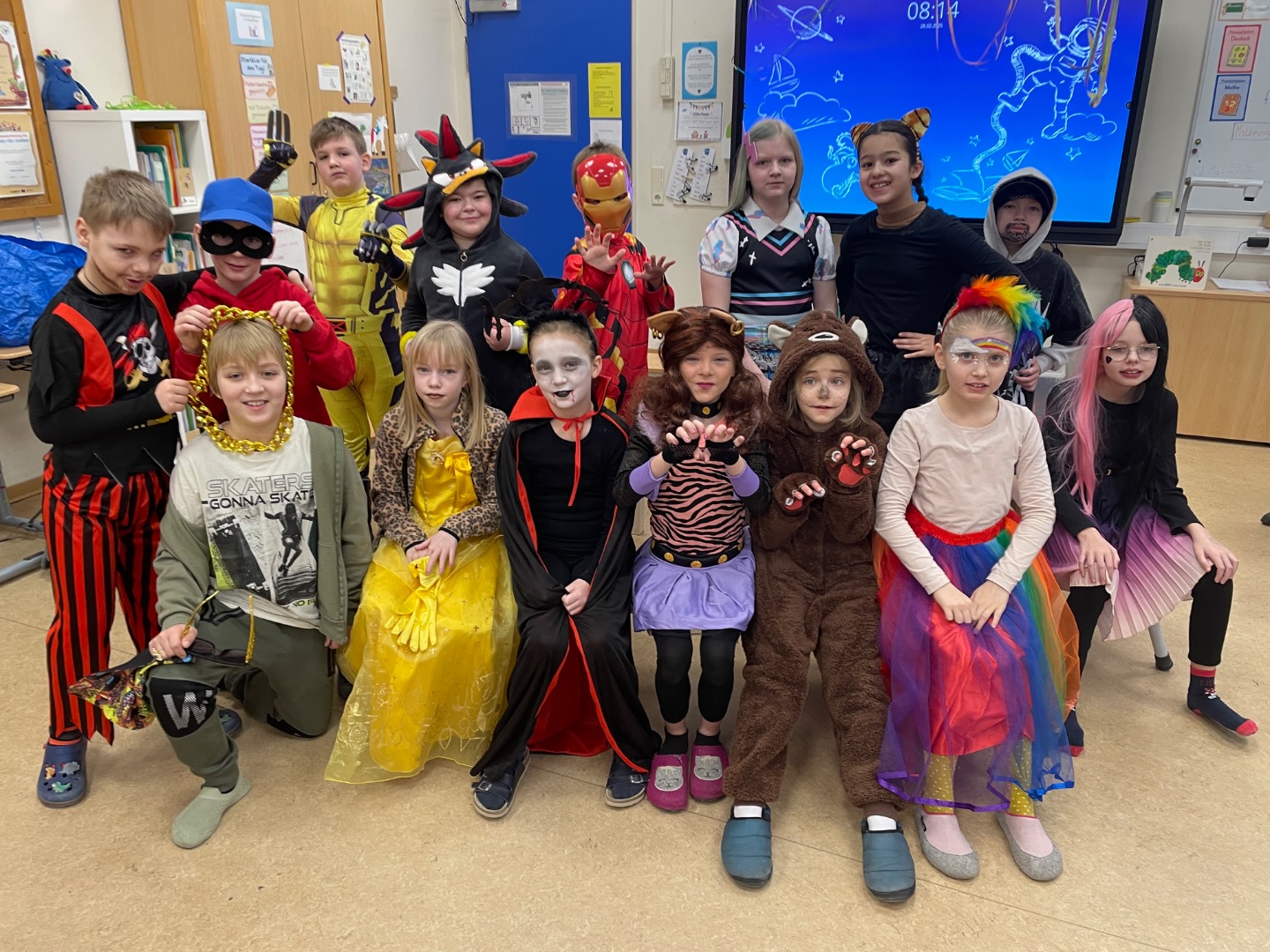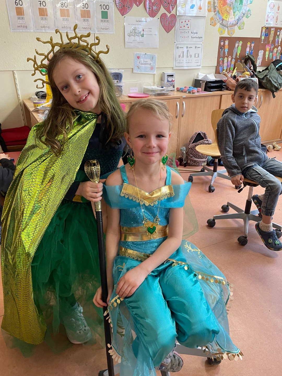 Heute war es bunt und laut in der Schule, denn wir haben Karneval gefeiert. Viele tolle und einfallsreiche Kostüme gab es zu bestaunen. In allen Klassen wurde viel gespielt, getanzt und auch das Süßigkeitenbuffet durfte natürlich nicht fehlen. Außerdem wurde eine Polonaise durch die Schule gemacht und auch in den Pausen wurde bei toller Musik getanzt und gelacht. Alle hatten einen tollen Tag.