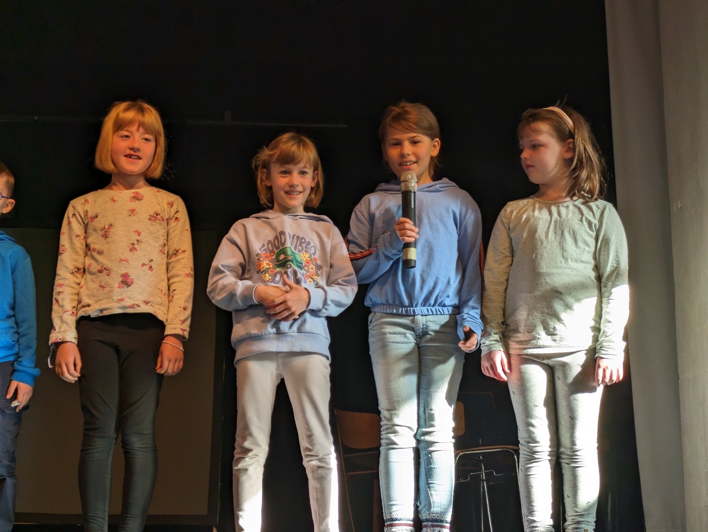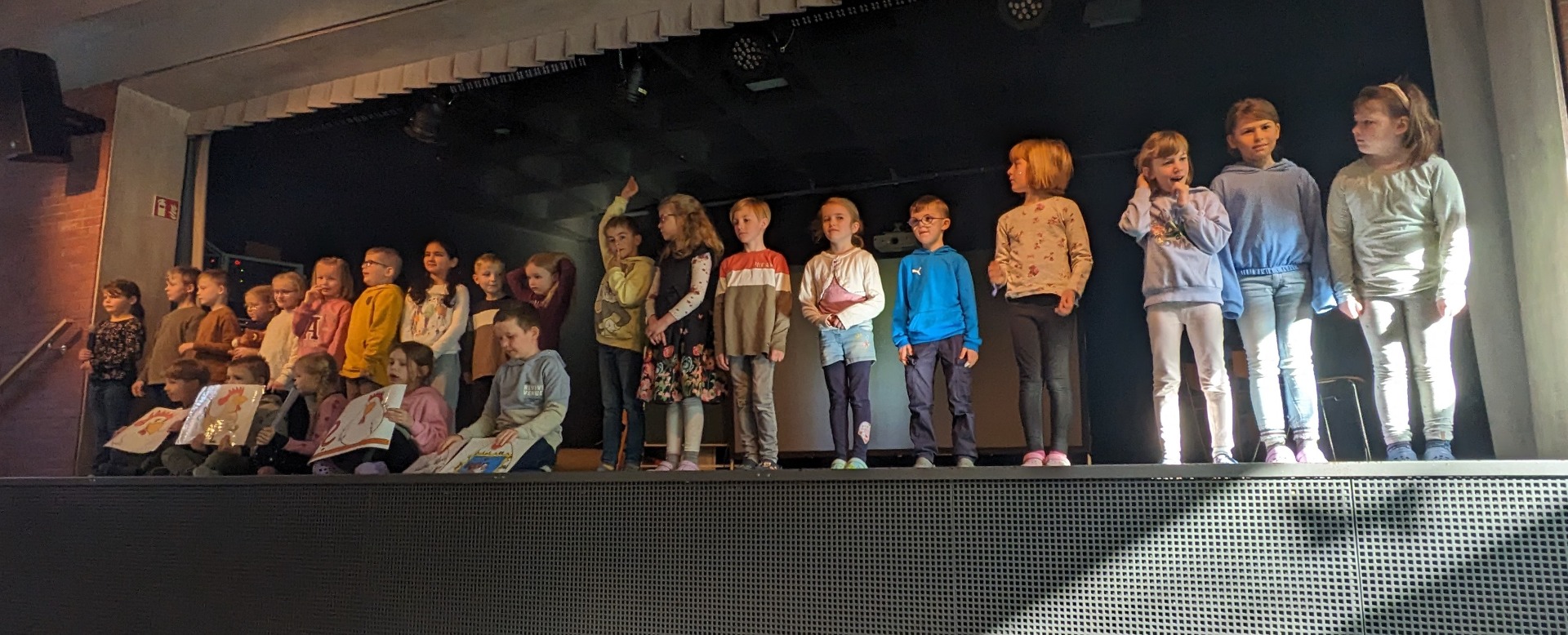 **<\/strong>Es gab heute ein buntes und fröhliches Programm bei unserem Frühlingsforum in der Aula. Neben Frühlingsliedern, die wir alle zusammen gesungen haben, waren auch drei Lieder dabei, zu denen einzelne Klassen getanzt haben. Die Klasse 1b hat in ihrem Lied den Frühling begrüßt. Zum Mitmachen mit viel Bewegung waren das Lied \'Im Radio ist ein Küken\' der 3a und auch das Lied \'Tanz alles, was du hast\' der 3c. Tolle Frühlingsgedichte präsentierten die 1c und die 3a. Auch ein interessantes Fotorätsel, das von der Klasse 4a gestaltet wurde, war dabei.<\/p>\r\n