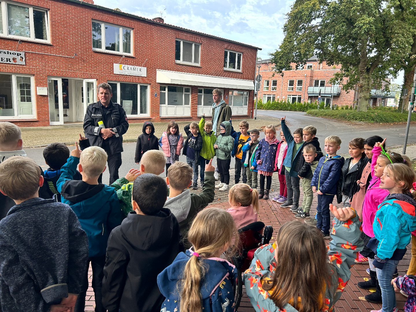 Im Rahmen eines klasseninternen Projekttags beschäftigten sich heute alle Kinder und ihre Lehrerinnen und Lehrer mit dem Thema nachhaltige Mobilität und Verkehr. Wir sprachen darüber, welche Verkehrsmittel wir auf dem Weg zur Schule nutzen oder ob unsere eigenen Füße uns zur Schule tragen. Wir tauschten uns über unsere Schulwege aus und ergründeten die Vor-und Nachteile der genutzten Verkehrsmittel. Gemeinsam mit dem Polizisten Herrn Franzen haben wir geprüft, an welchen Stellen wir die Straße gut einsehen und so sicherer überqueren können. Hier wurden gelbe Füße aufgesprüht. Außerdem überprüften die Polizisten alle Fahrräder auf Verkehrssicherheit, damit wir sicher mit dem Fahrrad zur Schule kommen. Zum Schluss besuchten alle Klassen auch noch eine Schulexpress-Haltestelle.<\/p>