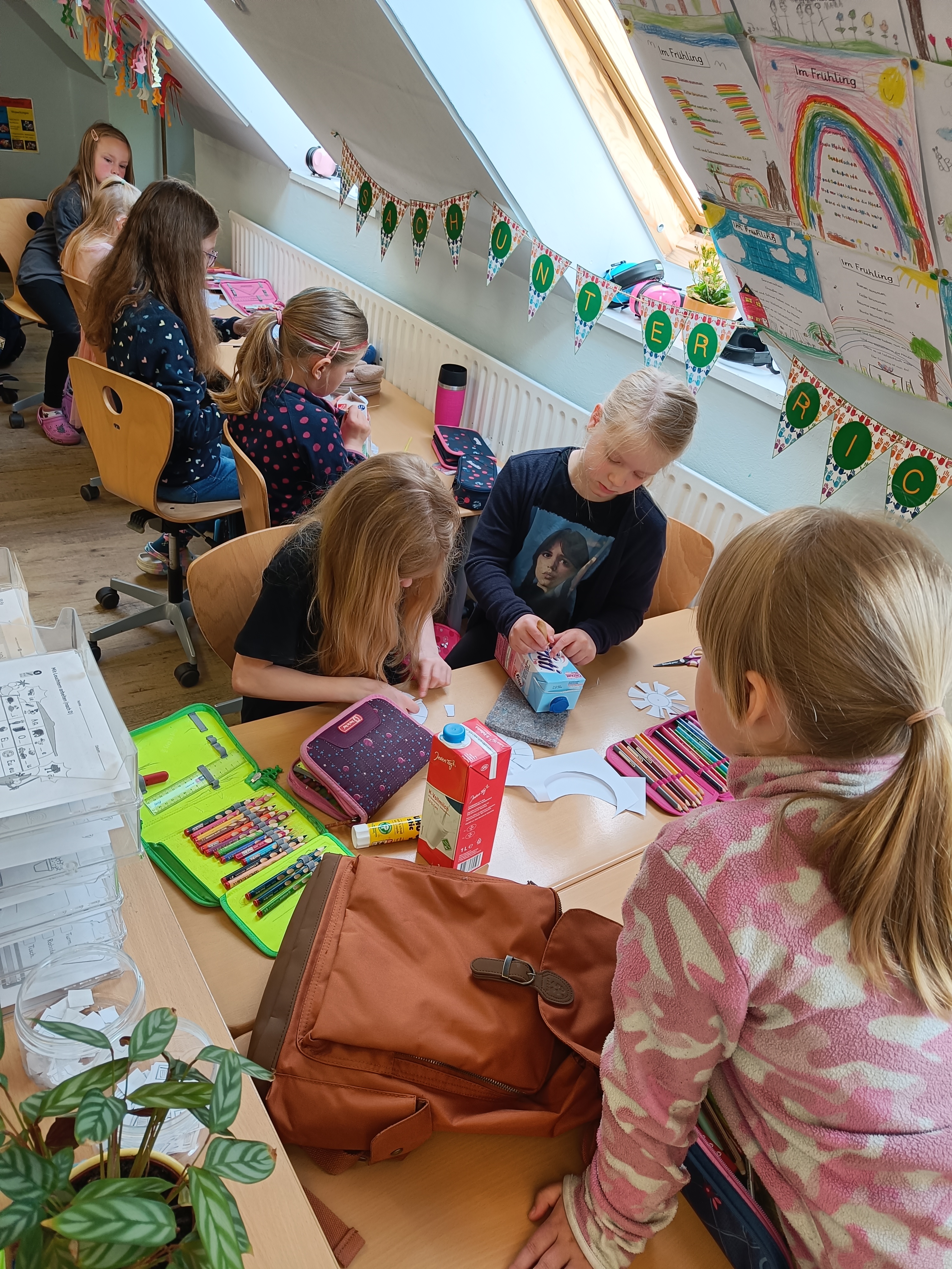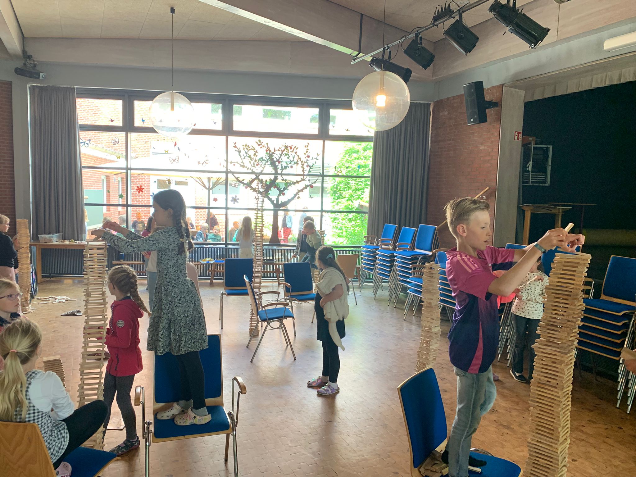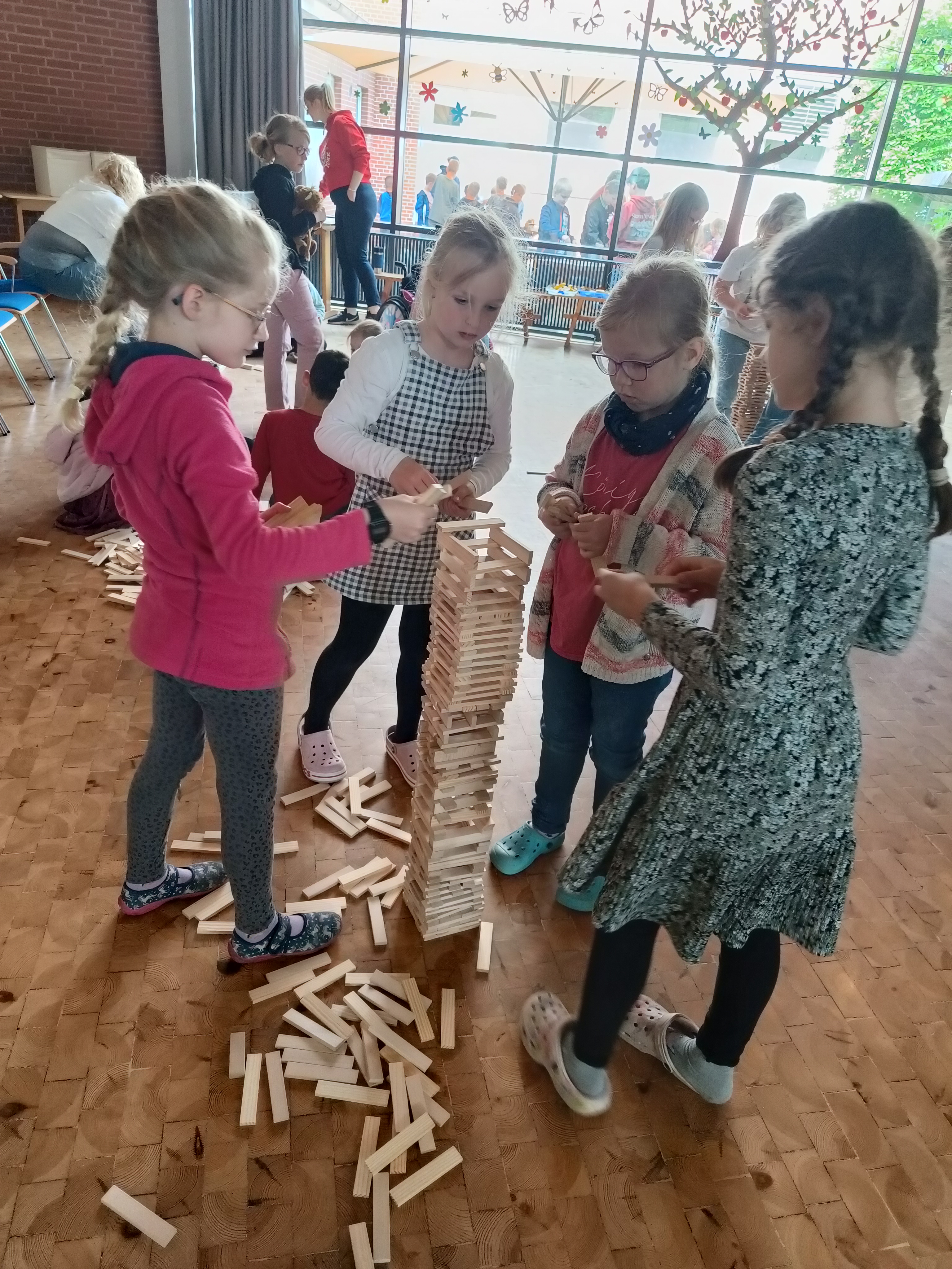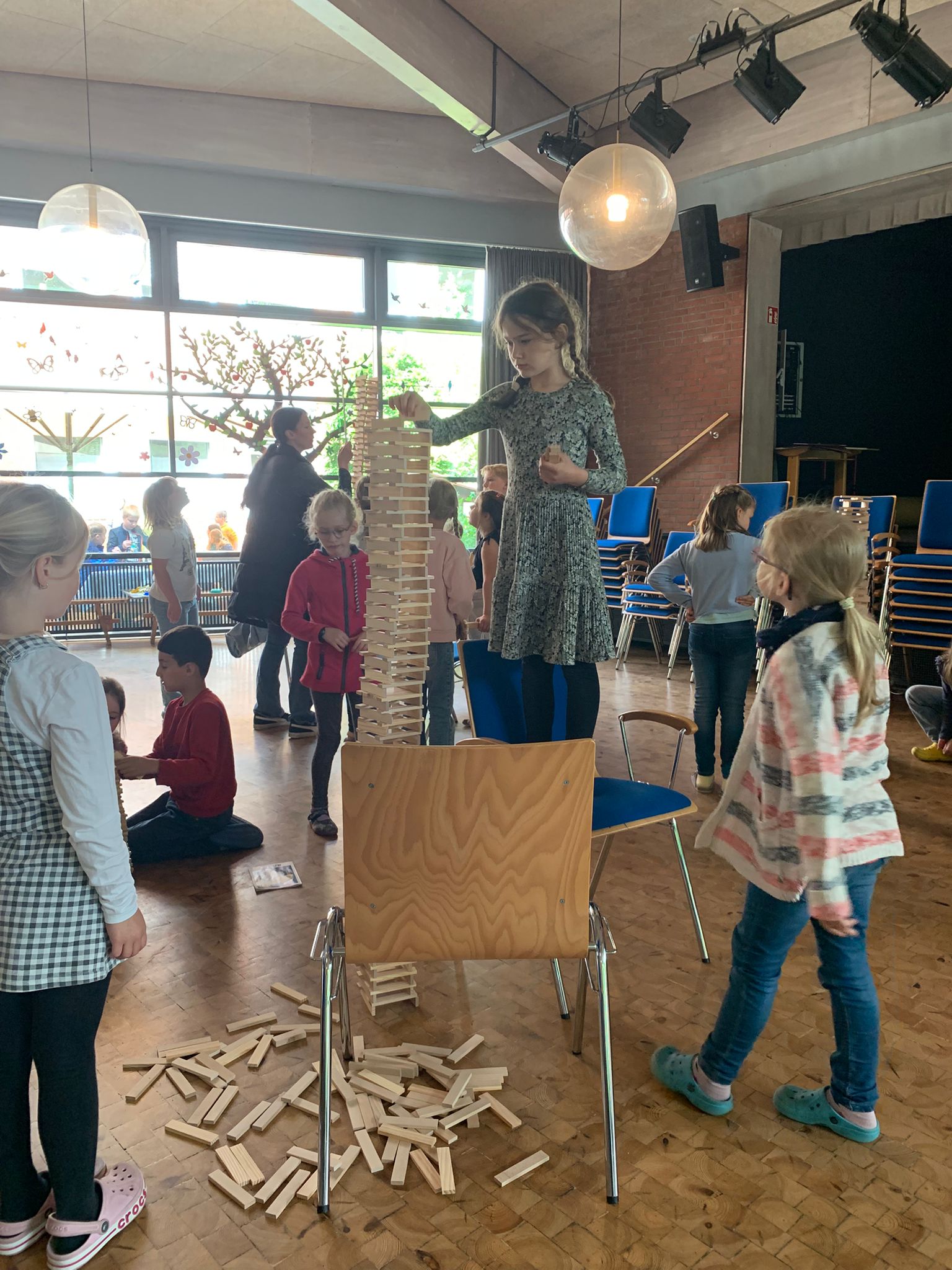 Am 21.05. fand an unserer Grundschule ein spannender MINT-Tag statt - ein Projekttag rund um die Themen Mathematik, Informatik, Naturwissenschaften und Technik. Die Kinder konnten an diesem Tag auf spielerische und kreative Weise vieles erforschen und entdecken. In verschiedenen Angeboten konnten die Schülerinnen und Schüler selbst aktiv werden. Es wurden Windkraftwerke und Insektenhotels gebaut, Roboter programmiert, Türme und Brücken gebaut, Symmetrien entdeckt und vieles mehr. Dabei stand vor allem das selbstständige Ausprobieren, Beobachten und Staunen im Vordergrund. Der MINT-Tag war ein voller Erfolg und hat allen Beteiligten viel Spaß gemacht.