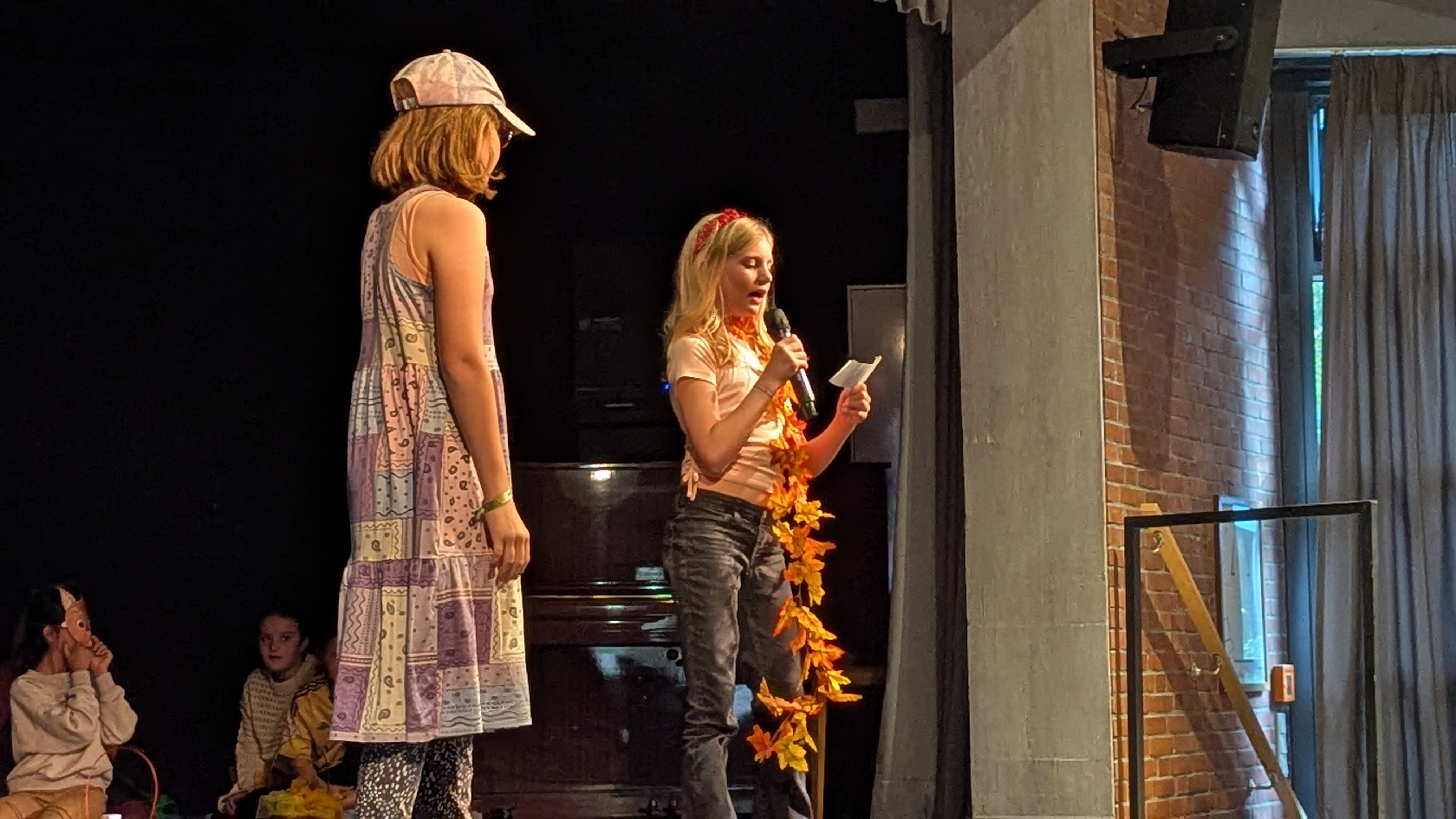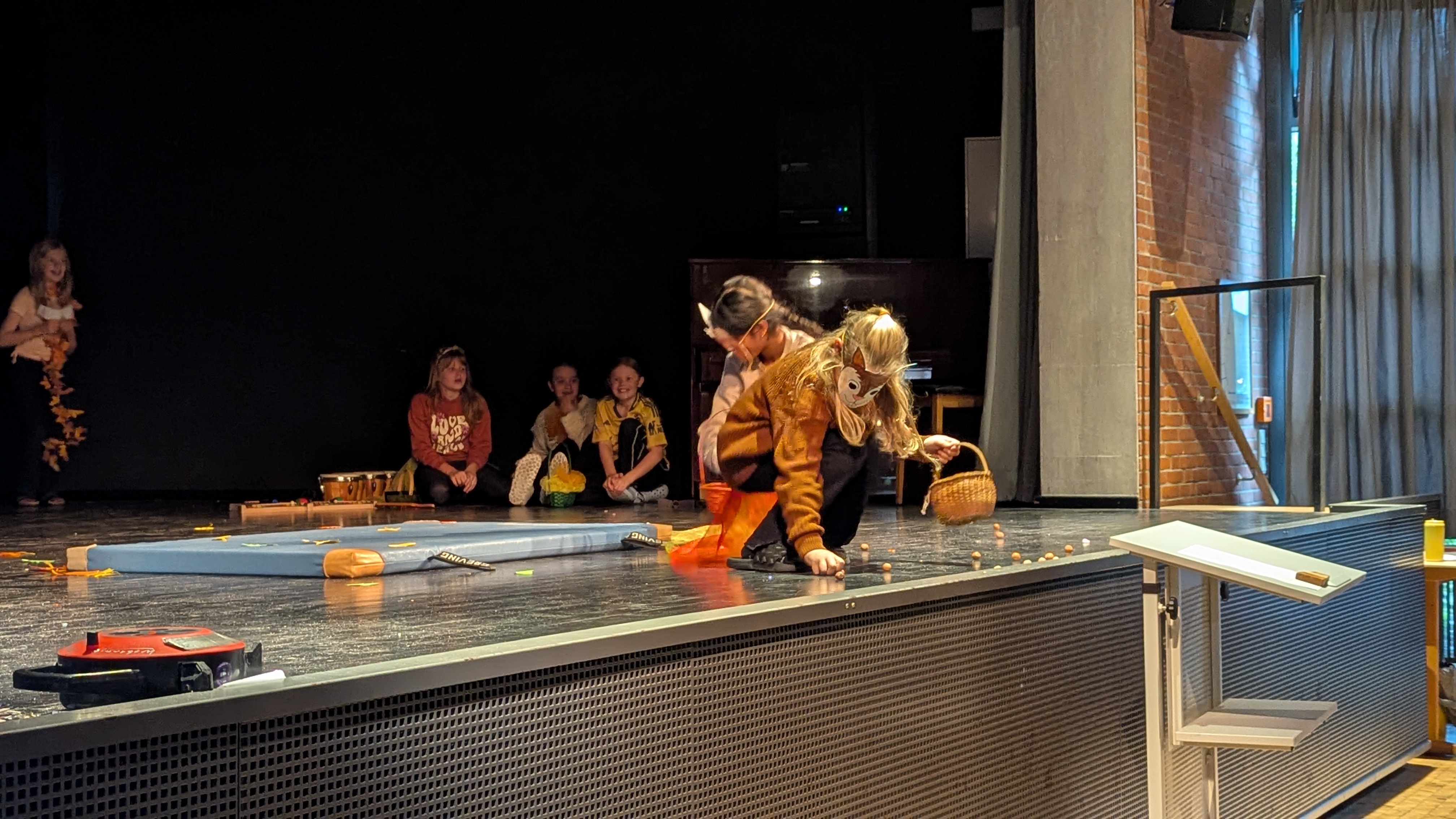 Die verschiedenen Herbstlieder sorgten für musikalische Einstimmung auf die Jahreszeit. Die Klassen 4b und 2b präsentierten ein Bilderbuchkino rund um ein kleines Eichhörnchen. Die Mädchen der 4b führten ein Gedicht über kleine Geister vor und die 4c zeigte ein lustiges und stimmungsvolles Theaterstück über den Einzug des Herbstes. Die 2a fuhr mit verschiedenen Fahrzeugen über die Bühne und erinnerte uns musikalisch an die Straßenregeln im Herbst.